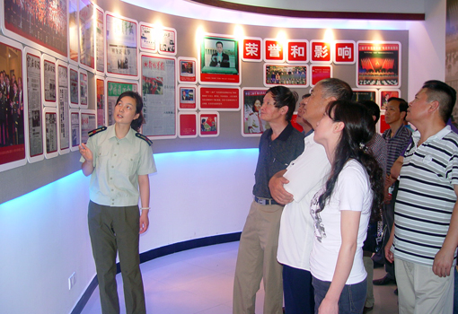 圖為:參加活動(dòng)人員參觀(guān)史料陳列室,聽(tīng)取“二妹子”民兵班第14任班長(zhǎng)陳金萍的現(xiàn)場(chǎng)講解。
