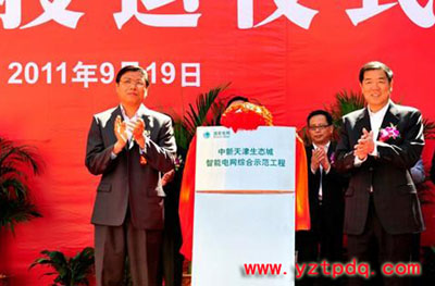 天津市委副書(shū)記、濱海新區(qū)區(qū)委書(shū)記何立峰和國(guó)家電網(wǎng)公司副總經(jīng)理、黨組成員欒軍共同為中新天津生態(tài)城智能電網(wǎng)綜合示范工程投運(yùn)揭牌。中新天津生態(tài)城智能電網(wǎng)綜合示范工程是天津智能電網(wǎng)建設(shè)發(fā)展的標(biāo)志性工程。此工程遵循“可實(shí)行、可復(fù)制、可推廣”的規(guī)劃思路,努力構(gòu)建安全可靠、優(yōu)質(zhì)清潔、高效互動(dòng)的能源供應(yīng)體系和服務(wù)體系。該工程投運(yùn)后,不僅風(fēng)電、光伏發(fā)電等可再生能源利用率可達(dá)到20%以上,而且電網(wǎng)能實(shí)現(xiàn)和有線電視、IP電話、互聯(lián)網(wǎng)的相互融合,其遙控、遙測(cè)、信息反饋的智能化能力可做到從居民生活到公共設(shè)施,再到工業(yè)生產(chǎn)的全涵蓋。