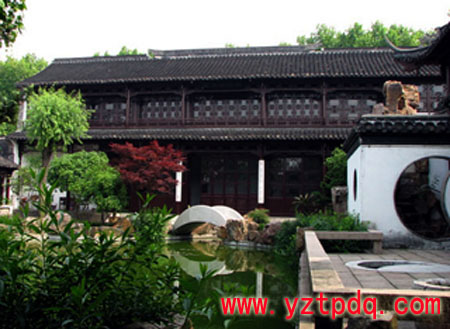 以著名詩(shī)句"天下三分明月夜,二分無(wú)賴是揚(yáng)州"而得名的揚(yáng)州二分明月樓。建于清代中葉,其主先為員氏、后為鹽商賈頌平。園中有山林一區(qū)、長(zhǎng)樓7間, 樓上懸清代錢詠書題"二分明月樓"匾額。樓欄虛設(shè),作美人靠;樓頂飛檐翹角,取勢(shì)空靈。園東有黃石假山,拾級(jí)登東閣全園有山有水,然水意涵蓄,達(dá)到了眼無(wú)神有的境界,實(shí)乃揚(yáng)州"旱園水做"的私家園林上乘之品。