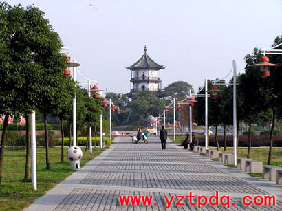 廣場(chǎng)設(shè)計(jì)遵循“以人為本、以水為源、以綠為美”的原則,注重高郵水鄉(xiāng)的地域特色。在整體布局上采用“一軸二面三點(diǎn)”,即以“景觀主軸線,蝶池小面、蝶園主廣場(chǎng),入口商業(yè)休閑廣場(chǎng)、親水廣場(chǎng)、宋城墻魁星閣古跡”為主體,水上平臺(tái)和引橋流水融為一體,使人感受到水鄉(xiāng)特有的水性的滋潤(rùn)。廣場(chǎng)綠化設(shè)計(jì)充分體現(xiàn)“花香蝶自來(lái)”的意境,種植花草樹木近40個(gè)品種,其中有櫸樹、香樟、桂花、梅花、天堂草等,錯(cuò)落有致。駐足看,廣場(chǎng)綠草如茵,彩蝶飛舞,彩色噴泉千姿百態(tài);徐行聽,流水淙淙,舞曲翩翩,綠樹叢中鳥啼鶯囀,讓人心曠神怡。