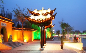 若是乘坐游船觀看古運(yùn)河夜色,模糊的燈光下,一抹黃墻還真能靠想象發(fā)發(fā)懷古之幽情,至于隋煬帝故宮,則早就湮沒于歷史的塵埃之中了。