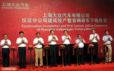揚(yáng)州網(wǎng)綜合報道 今天上午十一點(diǎn),上海大眾汽車有限公司儀征分公司舉行建成投產(chǎn)暨首輛轎車下線儀式。江蘇省委書記羅志軍,省長李學(xué)勇、省委常委、秘書長樊金龍,副省長張衛(wèi)國、揚(yáng)州市委書記謝正義、市長朱民陽等領(lǐng)導(dǎo)出席儀式并剪彩,共同為首輛轎車下線進(jìn)行啟動。