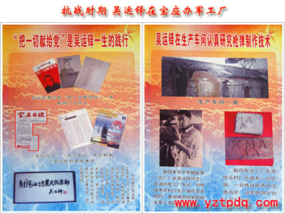 吳運(yùn)鐸是在礦山上長(zhǎng)大的。他從小隨父生活在江西萍鄉(xiāng)安源煤礦。為了謀生,進(jìn)入湖北大冶煤礦做機(jī)電工??谷諔?zhàn)爭(zhēng)爆發(fā)后,他來到皖南,報(bào)名參加了新四軍,原想上前線拿槍殺敵,卻被安排到軍司令部修械所制造槍炮子彈??吹剿斓牟綐尯妥訌椝偷角熬€去了,緩解了部隊(duì)作戰(zhàn)所需槍支彈藥緊張的矛盾,吳運(yùn)鐸認(rèn)識(shí)到造槍拿槍一樣是為革命,因而將修槍造彈視為自己的神圣使命。1939年5月18日,他光榮地加入了共產(chǎn)黨。在極端艱苦的斗爭(zhēng)環(huán)境中,吳運(yùn)鐸始終抱著“不辱沒共產(chǎn)黨員這個(gè)崇高稱號(hào)”的想法,從不退縮,一往向前。在油坊頭籌建兵工廠初期,一無廠房,二無設(shè)備,在吳運(yùn)鐸的帶領(lǐng)下,先借用群眾幾間草房干起來。為了解決設(shè)備問題,他們利用搜集的廢舊鋼材,制成各種機(jī)器數(shù)十臺(tái)。不到幾個(gè)月,就建成了鐵皮、鋼板結(jié)構(gòu)的廠房200多間,在廠東南角建起了煉鐵爐,西北角建起了煉銅爐,占地200余畝,有工人200多人,干部50多人。每到夜晚工廠被汽油燈照得通明,兩座高爐的火光映紅夜空,兵工廠不僅生產(chǎn)子彈、榴彈、炮彈,還不斷研制新式武器,制造“52”小炮、“73”炮、“82”炮。吳運(yùn)鐸在潛心試制各種殺傷力更強(qiáng)的武器過程中多次負(fù)傷。一次,在試爆炮彈時(shí),一枚啞炮突然,吳運(yùn)鐸被炸傷,左手被炸掉4個(gè)手指,左眼被炸傷,右膝蓋和腳趾被炸去一半,滿臉傷口流血不止。他被抬上卡車送醫(yī)院搶救療傷,昏迷了15天才恢復(fù)知覺,可他未等傷口痊愈,就提前出院,打著繃帶,回廠邊工作邊治療,又投入了軍工生產(chǎn)。