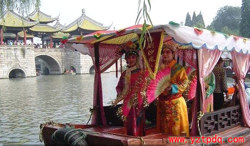 正月初五日叫“財神日子”,據(jù)說是財神菩薩生日。這天一清早,人們起床就挑水,叫做“挑財神水”;城里有以挑水為職業(yè)的人,趕著挑水到各家各戶,謂之“發(fā)利市”;附近有井的人家,忙著去提“元寶水”回家煮食圓宵,稱為“端元寶”。然后在家焚香燃燭,鳴放鞭炮“接財神”,以求財神爺保佑發(fā)財。接著到家門外附近路口去焚燒錢、錫箔“元寶”,叫做“燒利市”。初五這天早飯,人們有的吃圓宵,有的吃面條,有的煎食臘月二十四煮的糯米飯。這天,揚州人都要到財神廟去燒香,以期新年發(fā)財。還有不少人天不亮就趕到財神廟去燒頭香。舊時,揚州的財神廟有三座:一座在彩衣街口,叫“大財神廟”;一座在北柳巷北頭,叫“小財神廟”;另一座在現(xiàn)邗溝橋南頭,叫“邗溝大王廟”(俗稱“邗溝財神廟”)。傳說邗溝財神廟的神祗能使人“求財?shù)秘?rdquo;、“求子得子”,所以燒香的人很多。不少人到“邗溝財神廟”燒完香,還要在廟前的邗溝里(此廟門朝北)摸一塊石頭或磚頭帶回家,以示得到財神爺?shù)馁n“金”;一些求子心切的婦女,到“邗溝財神廟”敬香后,還要到東關(guān)城門口摸一摸城門上的漚釘(即門釘,因其形似浮漚——水泡,故名)。據(jù)說摸了漚釘后,無子的會早日懷孕,已孕的能“喜得貴子”。