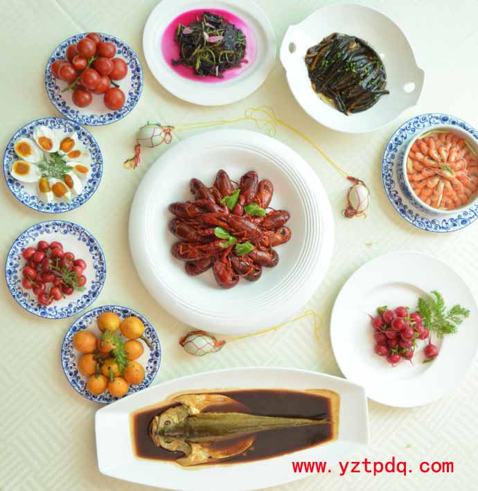 在端午“十二紅”當(dāng)中,還有兩道菜不可或缺,一是紅燒老鵝,再有就是大公雞,意在雞冠為紅色,然而今年的端午有些特別,春時(shí)露頭的一場(chǎng)禽流感使得江浙滬一帶禁止銷售雞鴨鵝,餐館酒店里也見不著禽類的蹤影。好在民間的智慧無窮,在拍攝制作這一期端午十二紅時(shí),想到用橫掃揚(yáng)州整個(gè)夏天的小龍蝦來替代。至于民間的十二紅,豐儉由人,只要那么關(guān)鍵的幾樣,心意到便好。